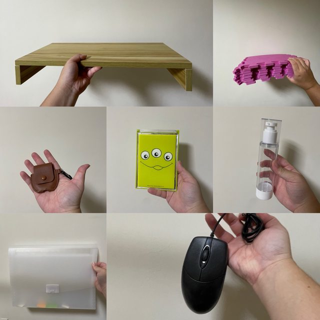 物品名稱:螢幕墊高架/粉色巧拼/Airpods 2保護殼/三眼怪摺疊鏡/全新乳液分裝瓶/資料