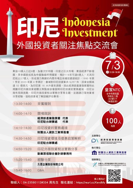 標題[分享] 免費講座7/3投資印尼關注焦點交流會
