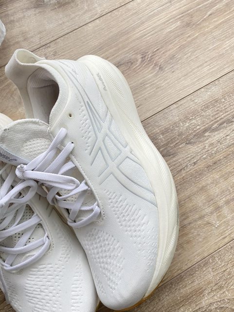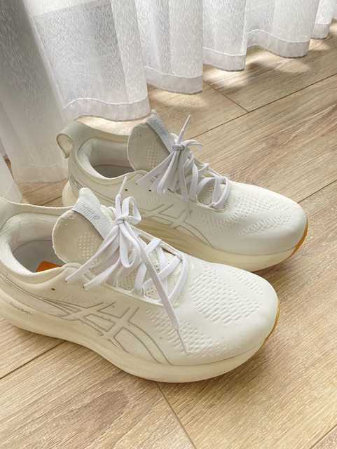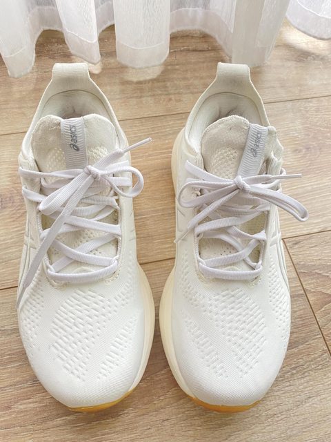 此顏色台灣原價就斷貨 2.亞瑟士 gel-nimbus25 全白限量款 女鞋25.5/售2100元 這雙的底超舒適 但可惜鞋型跟我的腳不合