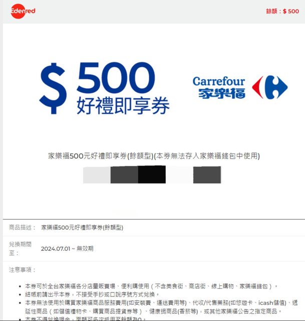 3. 家樂福即享券餘額型 (不可存錢包)(9折)