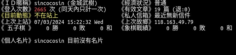 → unicorn66: 全數洽中 暫停收信不好意思! 202.43.212.70 07/04 22:17