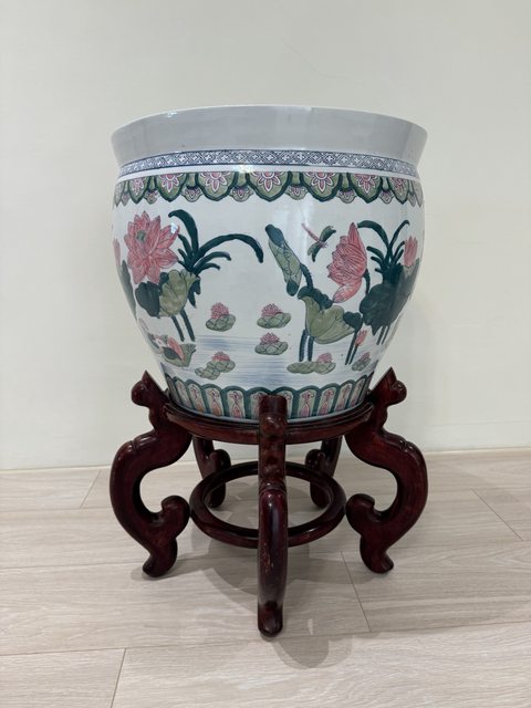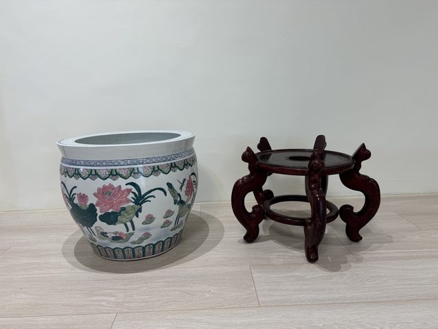物品名稱:大水缸含木頭底座(已有板友預定) 物品說明:水缸高39*直徑46+底座總高度約69公分 物品實照: