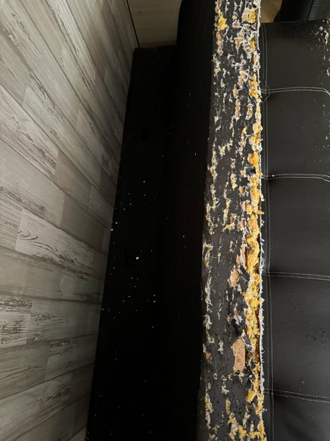 沙發床本身是很乾淨的,就只是被這隻小朋友抓成這樣,套個沙發套就能正常使用。