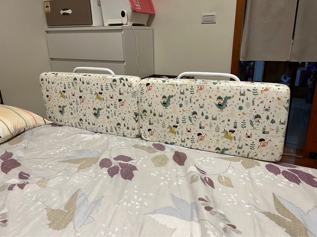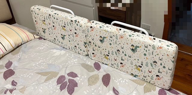 出售金額:300元 新舊狀況:約109年購入,7成新 椅背有些髒污 請自行清理 可以調整椅背角度 但有一邊的手把不見 商品名稱:床欄 商品照片: