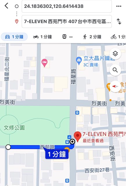 再來也只有到逢甲文修公園下車至711西苑門市