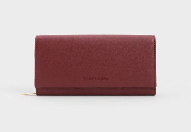 錢包為紅色長夾,品牌是CHARLES & KEITH