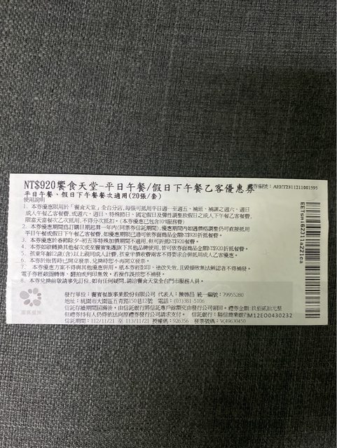 物品:饗食天堂平日午餐/假日下午餐券*6