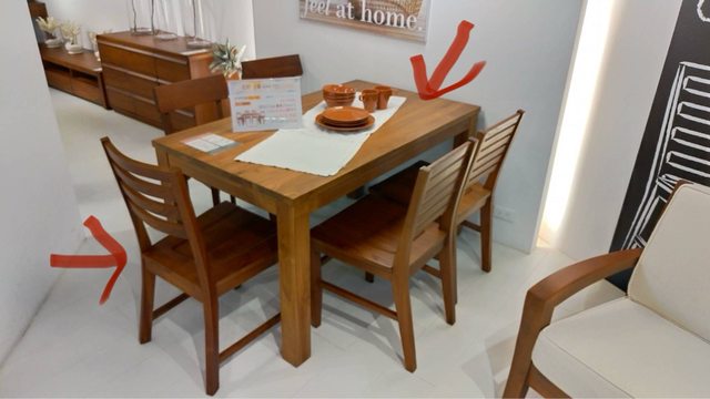 全新詩肯柚木餐桌*1+餐椅*4 (椅子款式有用箭頭標示)全部賣23000元