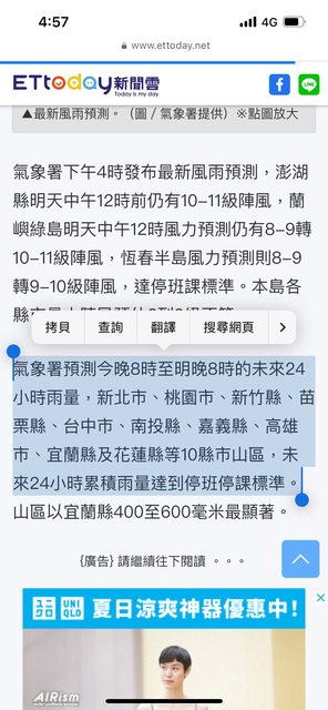 推 archiu888: 和平區一定放吧 其他地方再看看 1.165.83.76 07/23 18:10
