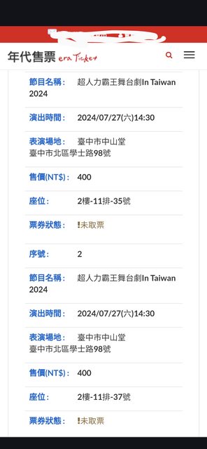 標題[交易] 全區/超人力霸王舞台劇(2張 )7/27中山