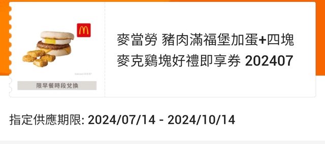 1.麥當勞豬肉滿福堡加蛋+4塊雞塊