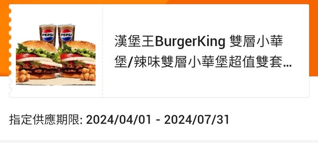 3.漢堡王雙層小華堡雙套餐(原味/辣味)