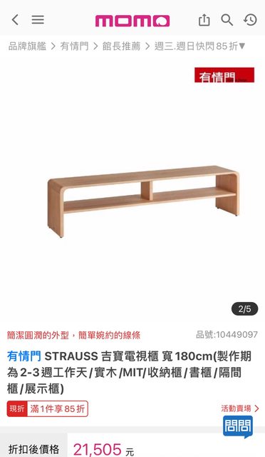 註:同款新品momo價格21505元,因家裡客廳重新裝潢,之後用不到故售出