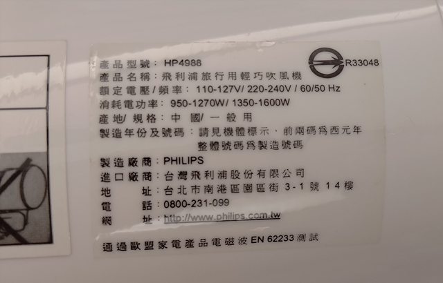 1. 飛利浦HP4988旅行吹風機,可調電壓,二手少用近全新,售300元