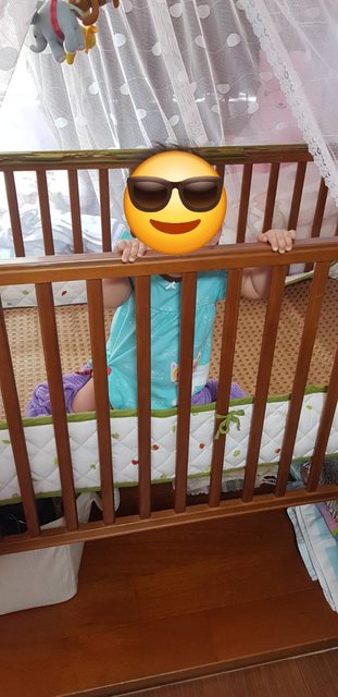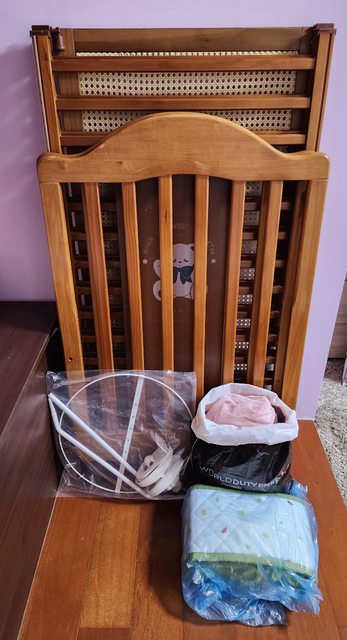 物品: 二手實木嬰兒床+蚊帳+床圍