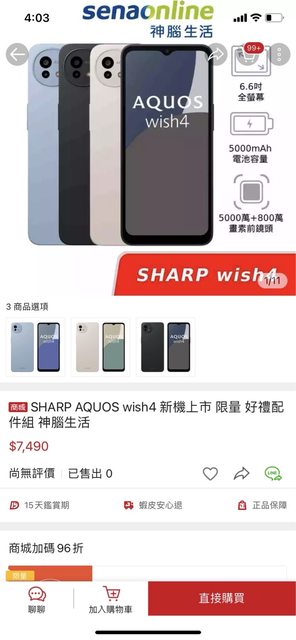 標題[商業] 南屯 Sharp Aquos wish 4手機