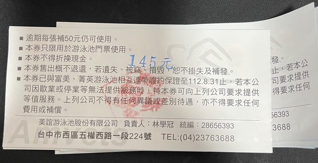 標題[交易] 西區南屯/ 日日新電影票 美誼游泳票