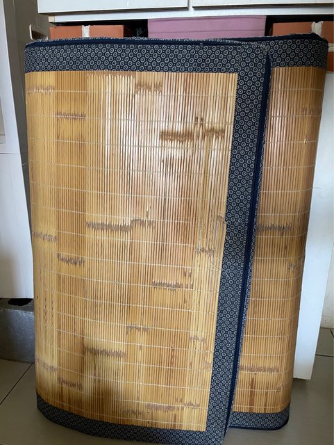【其他說明】 兩個木櫃尺寸長73*寬24*高117,兩張餐椅長53*寬44*高90,竹蓆可3折,