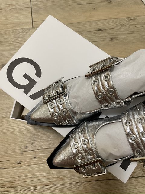 物品:Ganni 尖頭芭蕾鞋 銀色
