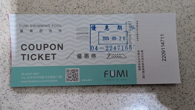 標題[商業] 北屯 / 富美(大台中)游泳票