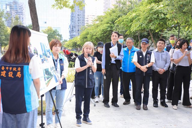 在台中市養工處長白玨英帶領下,陳大田、游志祥視察市政路整備情況,白玨英指出,賽事