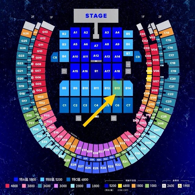 票券區域:特B13 區 ,16 排