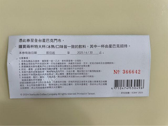 2.星巴克好友分享券,每張30,共有8張(期限2025/06/30)