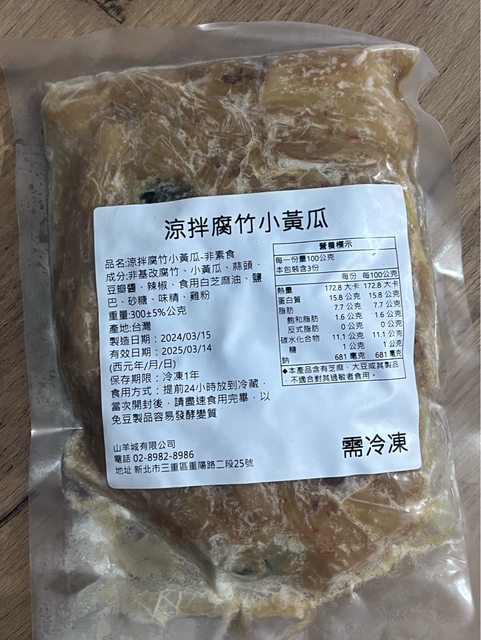 1.涼拌腐竹小黃瓜一份,冷凍保存。