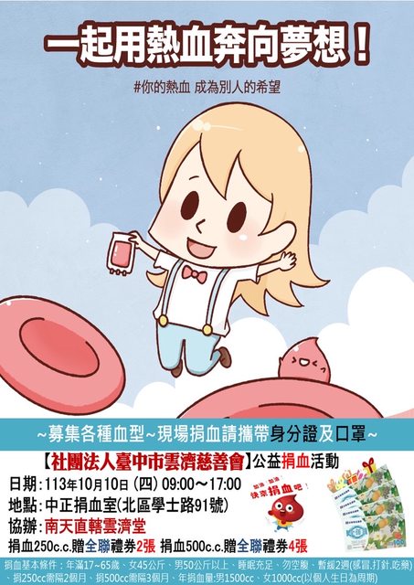 標題[資訊] 10/10中正捐血室活動
