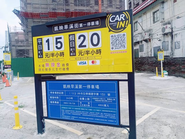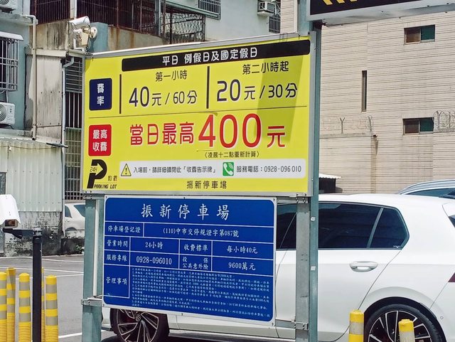費率:平日15元/半小時,假日20元/半小時,平日最高平180元,假日最高250元;