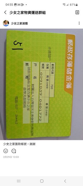 如果您需要蓋好少女之家戶名跟帳號的郵局無摺存款單
