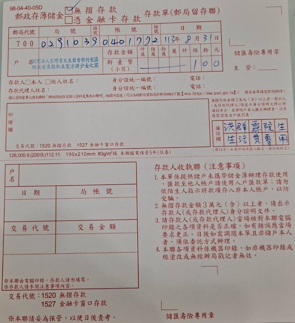 如果您喜歡最傳統的跑郵局收集存款收據跟捐款收據紀念外加指定捐用途的話