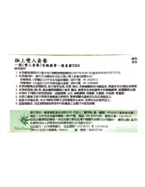 逾期使用需補足差額(餐券面額2350元)