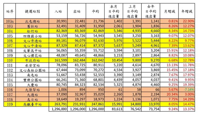 5、本文參考 Sunny821210、TaiwanXDman板友高雄捷運各站旅運量的發文格式。