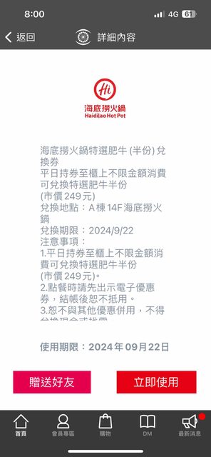 物品名稱:海底撈優惠券
