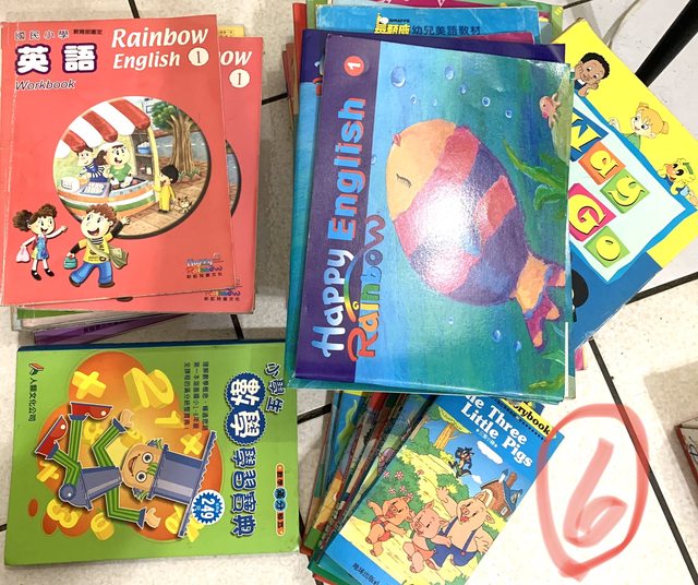 (整套英文繪本以及各大美語補習班用書)