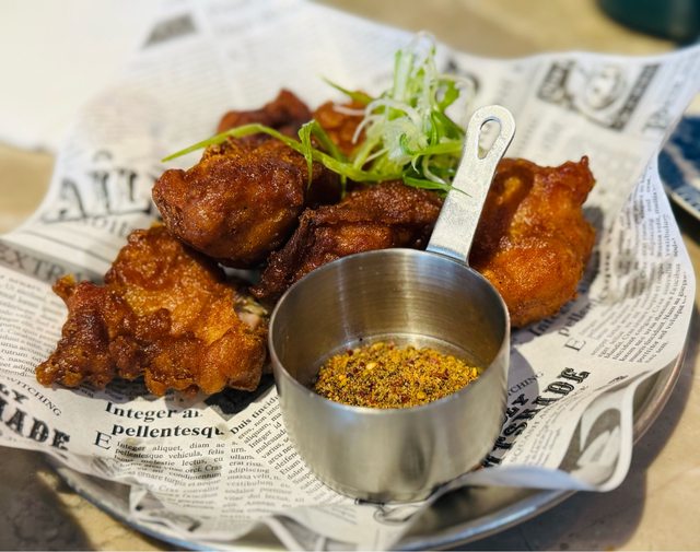 青花椒薄皮炸雞,外皮酥脆不刮嘴,鎖住軟嫩雞汁,淡淡胡椒味帶著青花椒香麻,不