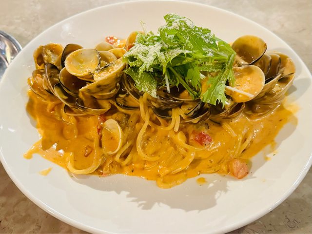 橘醬超級爆炸蛤蜊麵,彈牙咬勁的義大利麵上爆炸多的蛤蜊,每一口都沾滿香濃橘醬。這