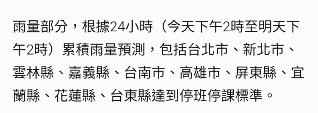 → tue678: 有顯著災情 淹水 風災 不然正常上班上課 42.79.228.9 10/03 12:43