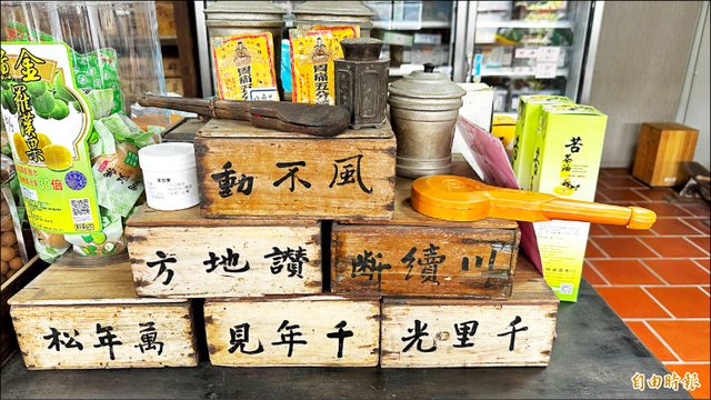 義成堂中藥行已有百年歷史,保存早期的漢藥盒。。(記者劉婉君攝)