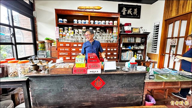 義成堂中藥行已有百年歷史,第四代黃志澈任社區導覽員。(記者劉婉君攝)