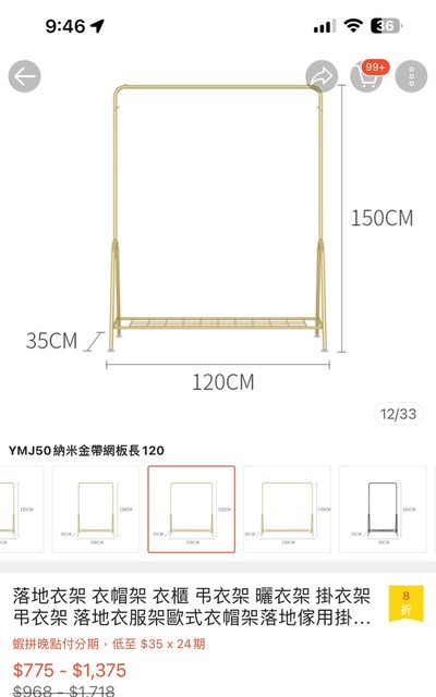 衣架應該是120或150公分(忘記量測)