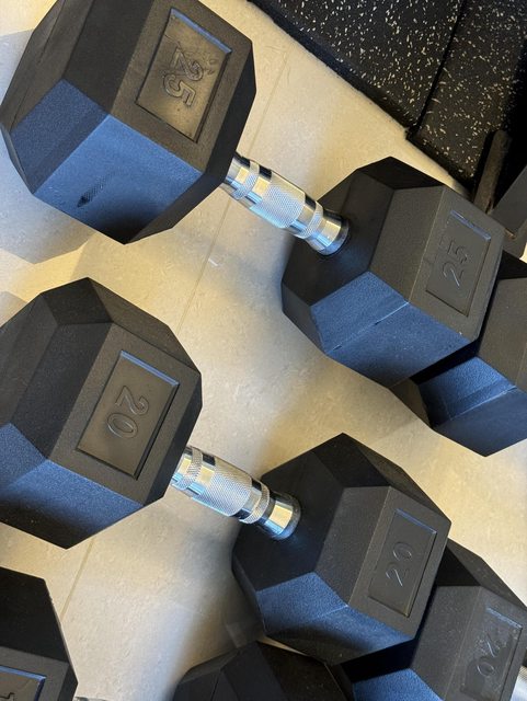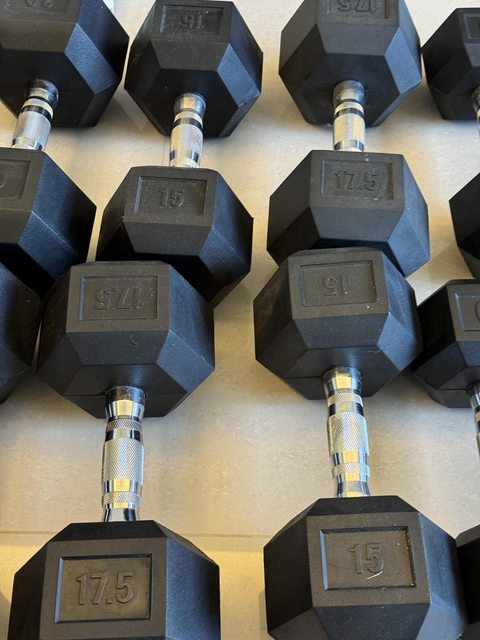 包膠六角啞鈴六組 重量分別為7.5、10、15、17.5、20、25(公斤)