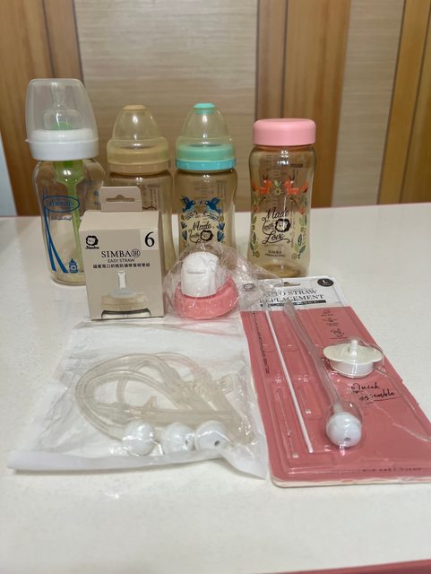 小孩就是用奶瓶銜接吸管,脫離奶嘴的,圖中這組學習吸管和杯蓋皆「全新」