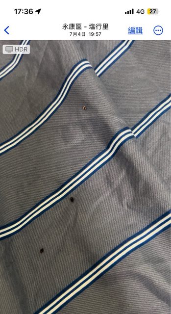 但在第四天發現有活生生的蟲在床上爬(圖二)