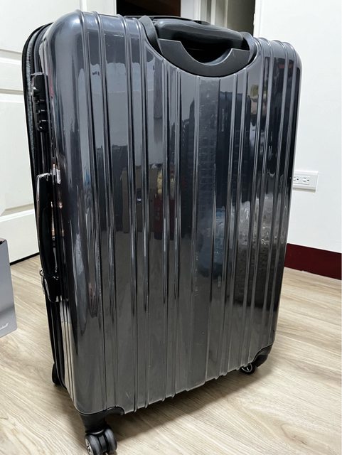 銀灰色,外觀無問題,僅輪子走在非平滑的地面會不好推,整個行李箱質感很好~