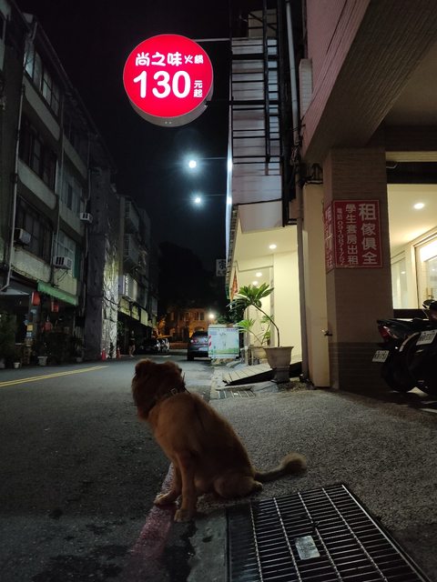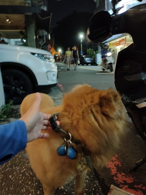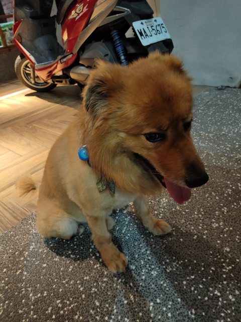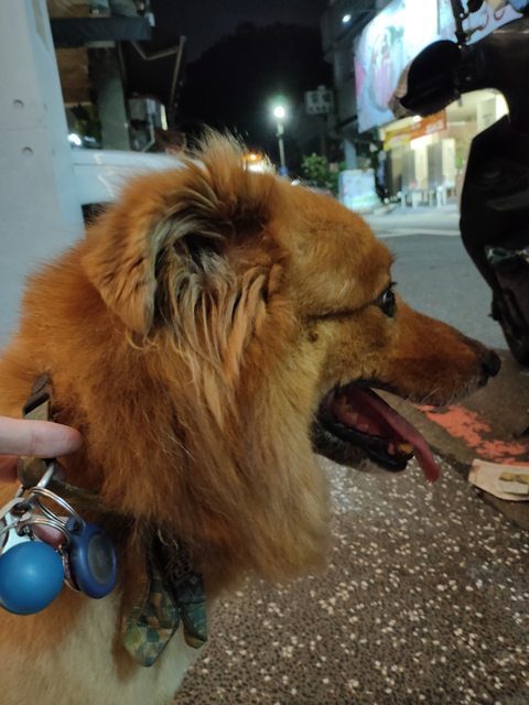 給人感覺就是很乖很聰明,很喜歡上機車樣,綁在水溝蓋旁後就看他乖乖趴著了,