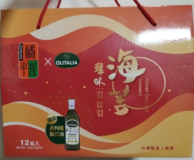 2. 海苔禮盒剩3盒,一盒180元,2個350元,3盒500元,有效期限2024/10/11