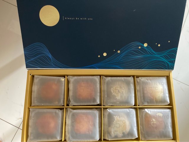 琥珀蛋黃酥*2、奶黃留心餅*2、芋泥金沙酥*2、綠豆金沙酥*2