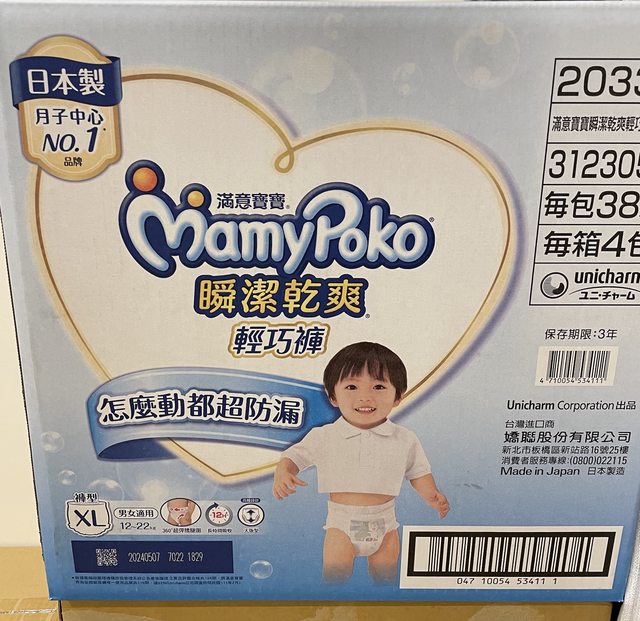 滿意寶寶瞬潔乾爽輕巧褲XL142片售1050元/箱